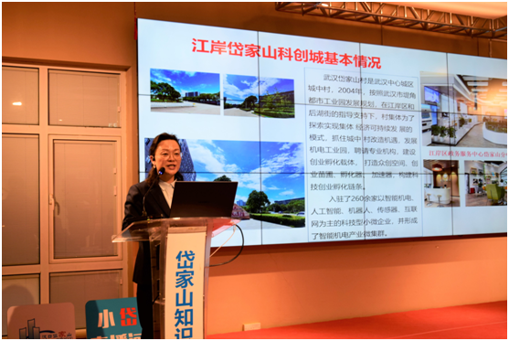 采访团来到武汉江岸区岱家山科创城,了解园区疫后重振情况。据了解,岱家山科创城质量基础“一站式”服务为企业赋能,2020年培育出28家国家高新技术企业。图为:讲解员为记者介绍岱家山科创城的情况。