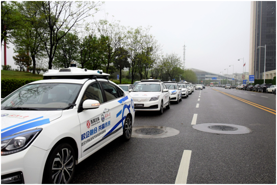 采访团来到武汉东风汽车集团有限公司,聚焦武汉经开区下一代汽车产业和智能网联技术发展新成果。在这里,记者体验了公司最前沿的自动驾驶测试车辆。图为:整齐停放的自动驾驶车辆。