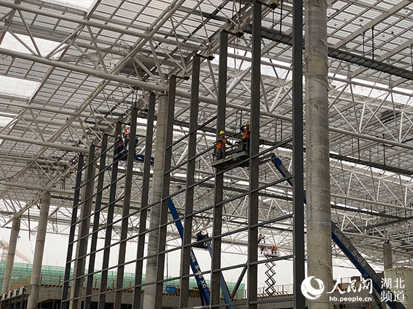 在鄂州花湖机场建设现场,各个标段作业有序进行,航站楼和货运站的土建和钢结构建设已经结束,西跑道雏形初现,作为机场控制中心的塔台也已完成混凝土结构施工。