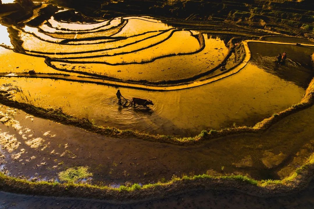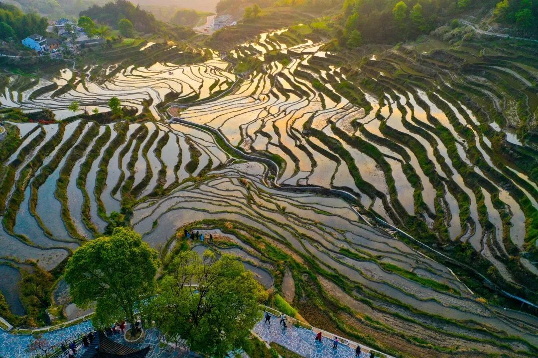 四月春耕时节,湖北的梯田变成了春日里的“最美曲线”。层层叠叠的梯田在光影下泛着片片银光,犹如巨幅五线谱,奏响在山间田野。