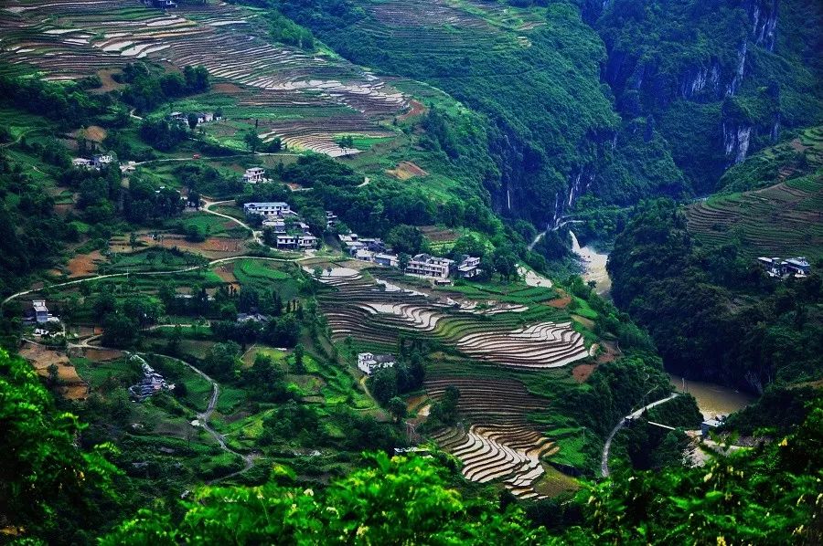 这个有着千年历史的土家村落,平均海拔700多米,西边全部是悬崖环抱,境内有3000多亩梯田,是地地道道的悬崖梯田村。每年春天,金灿灿亮闪闪的油菜花铺满层层梯田,镶嵌在田园山林中的樱花、梨花、桃花幽香扑鼻,村民们在层层梯田间劳作,组成了一幅美好的画面。
