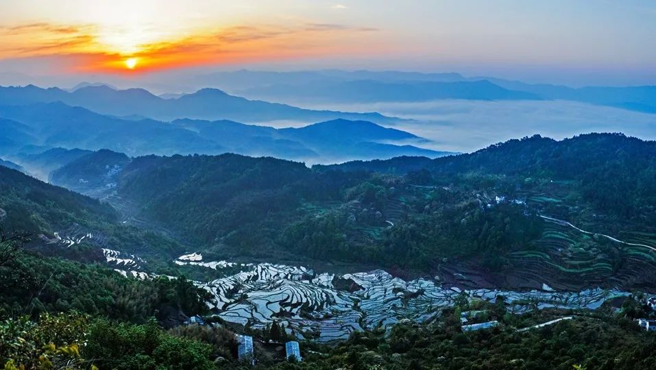 雾云山梯田是唐朝年间保存下来的梯田,总面积约110亩,分310块小田,层叠错落、有序规整地排列在山坡上,最高处与最低处的落差达120米,气势磅礴,四季皆不同,四季皆风景。梯田群奇特的地形、地貌和天地合一优美绝伦的线条,每年都吸引摄影爱好者和旅游爱好者云集于此。