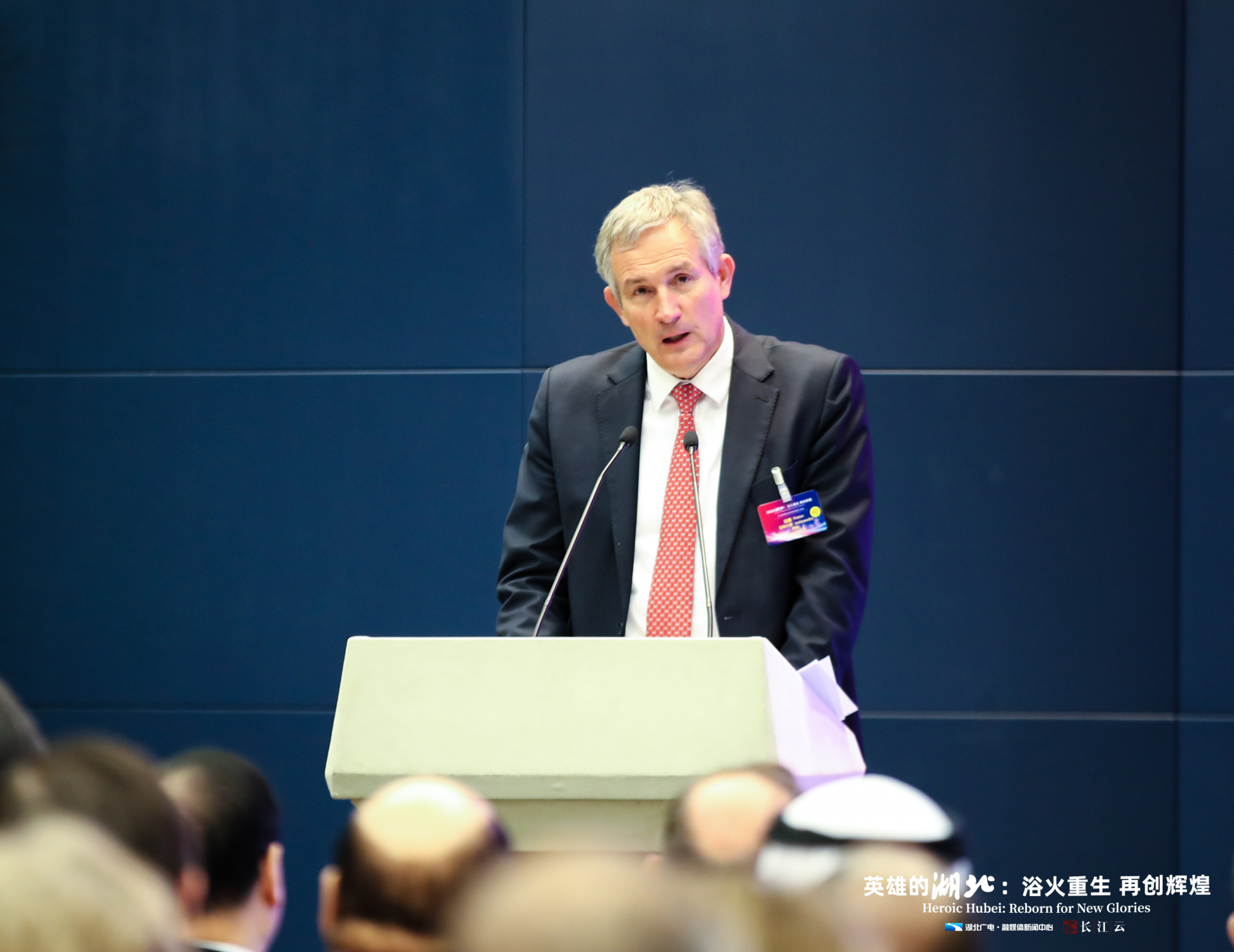 4月12号下午,“英雄的湖北:浴火重生,再创辉煌”湖北全球特别推介活动在外交部蓝厅举行,法国驻华大使罗梁现场致辞。