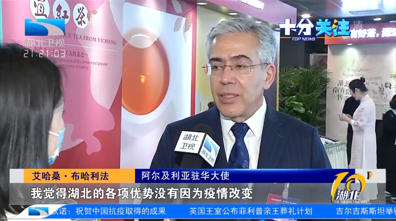 阿尔及利亚驻华大使艾哈桑·布哈利法:“几个星期前我才去了湖北,去了武汉,我觉得湖北比以前更美了,我考察了这里的经济、教育、科技方方面面,很惊讶湖北恢复得这么快,去年那么困难,GDP还是排名全国前十,我觉得湖北的各项优势没有因为疫情改变。”