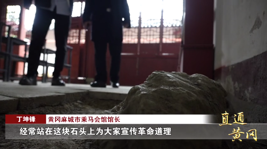 黄冈麻城市乘马会馆馆长丁坤锋:“他白天教孩子读书,晚上教农友识字,经常站在这块石头上为大家宣传革命道理。”