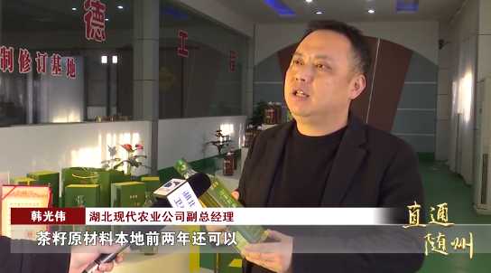 湖北现代农业公司副总经理韩光伟:“茶籽原材料本地前两年还可以,但是现在由于我们的市场扩大,市场份额的增加,现在已经不能够完全满足于我们的市场需求了。”