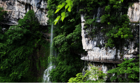 景区内有世界第一长的绝壁栈道,全长6300米,还有一条全长236米的3D交互式玻璃栈道,为全国最长,以及国内唯一的一条3D玻璃观光走廊,该走廊全长156米,宽4米,落差300多米,当游客走上玻璃观光走廊,脚下会显示包括“玻璃碎裂跌落”和“海底世界”等人屏互动动漫,实现了游客与虚拟画面互动的交互式体验。
