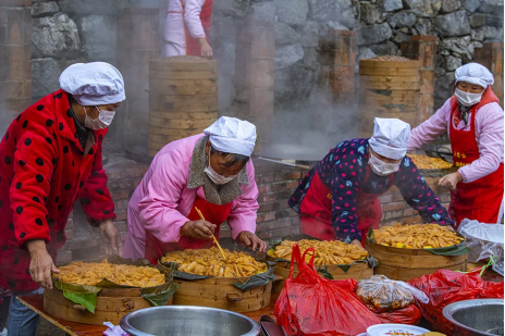 久而久之,这杀年猪的民俗流传下来,也成就了格子蒸肉“土家第一大菜”的美名。