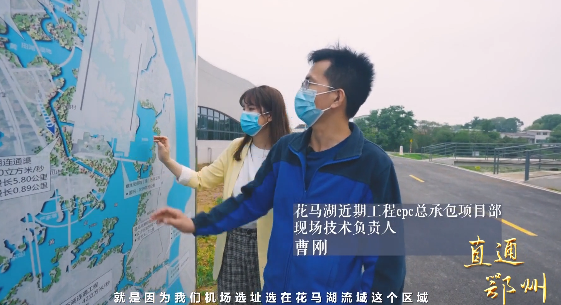 花马湖近期工程epc总承包项目部现场技术负责人 曹刚:“就是因为我们机场选址选在花马湖流域这个区域,机场阻断了我们花马湖流域上中湖水系连通,目前在这一块新建了一条水系连通渠,另外在上湖邻近长江的位置重新新建了一条排水港以及抽水泵站。目前我们就在花马湖二站的位置,外面就是我们的出水渠,保证上湖水系与我们长江是连通的。”