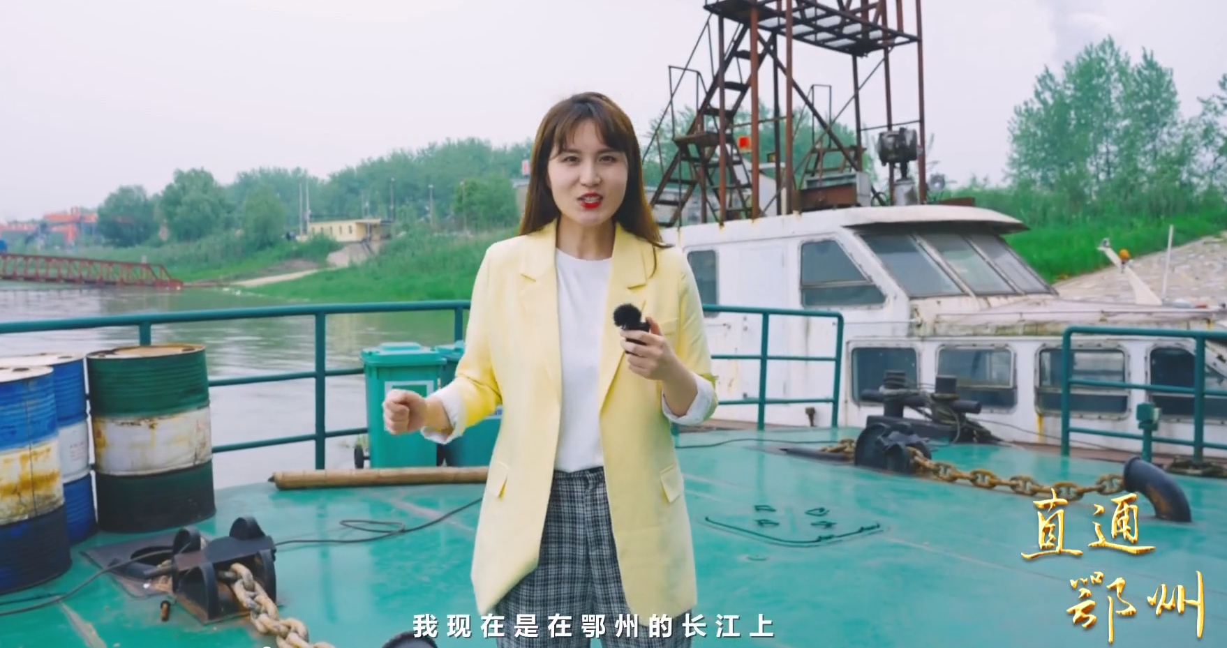 记者 杨雨薇:“我现在是在鄂州的长江上,这个地方是鄂州港,整个长江干流流经鄂州大概有87公里的距离,我们今天找到一位有32年驾驶经验的汪船长带着我们一起沿江看鄂州。”