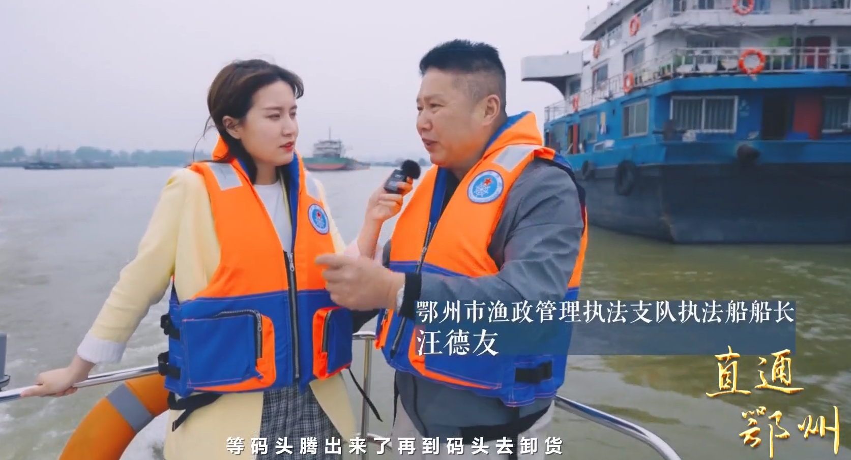 鄂州市渔政管理执法支队执法船船长 汪德友:“所有到鄂州卸货的船都在这里抛锚,等码头腾出来了再到码头去卸货,这是鄂州专门停船的地方。鄂州岸线的变化很大,这么多年特别是长江大保护以来,所有城区的码头都迁到了郊区。以前长江水是浑的,垃圾成堆,现在基本上看不到了。”