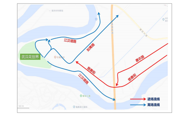 节日期间根据实际车流情况对武汉市石榴红村周边道路实行临时交通管制:知青路(慈惠街路至惠安大道)由南向北(慈惠街往惠安大道方向)、知青路(慈惠街路至汉江堤路)由东向西 (慈惠街路往汉江堤方向)、慈惠街(知青路至京珠桥下段)由向西(京珠桥下段往知青路方向)、汉江堤路(石榴红村至京珠高 速段)由西向东(石榴红村往京珠高速段方向),汉江堤路(石榴 红村至高桥二路段)由东向西(石榴红村往高桥二路段方向)实施单向通行,部分路段沿线禁止机动车停放。