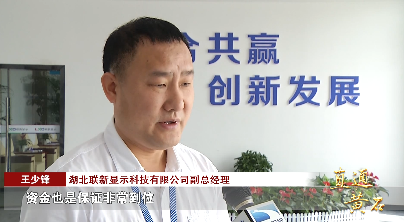 湖北联新显示科技有限公司副总经理王少锋:“当地的一些招商力度 还有当地的一些招商政策,对企业发展作重大支持,资金也是保证非常到位,政府支持也是比较到位。”