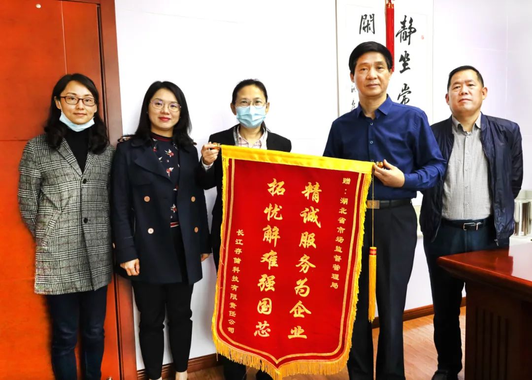 4月26日一大早,长江存储科技有限责任公司(以下简称“长江存储”) 相关负责人邱红梅就来到湖北省市场监管局认证认可与检验检测管理处(以下简称“认检处”),将一面锦旗送到工作人员手中。