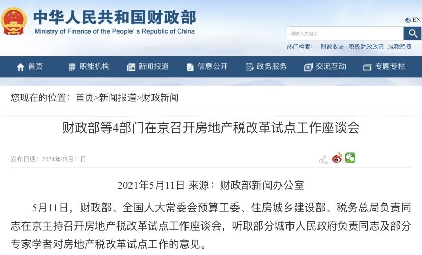 记者从财政部了解到,11日,财政部、全国人大常委会预算工委、住房和城乡建设部、税务总局负责同志在京主持召开房地产税改革试点工作座谈会,听取部分城市人民政府负责同志及部分专家学者对房地产税改革试点工作的意见。