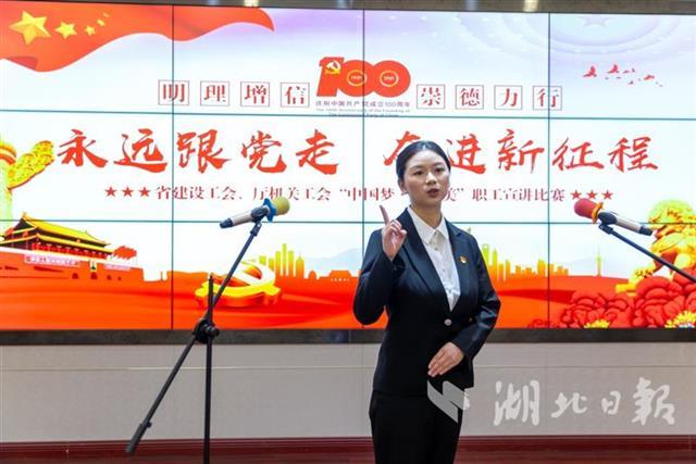 “学党史,跨越百年风雨兼程;感党恩,没有共产党就没有新中国;跟党走,坚定信念永不回头!……” 4月29日下午,省建设工会 “中国梦·劳动美--永远跟党走 奋进新征程”职工宣讲比赛成功举行。来自各直属工会的16名选手依次登台,深情讲述自己认真研学“五史”的所思、所悟、所获,用铿锵有力语言表达了建设产业干部职工喜迎中国共产党百年华诞的豪迈之情和颂党恩、听党话、跟党走的坚定决心。
