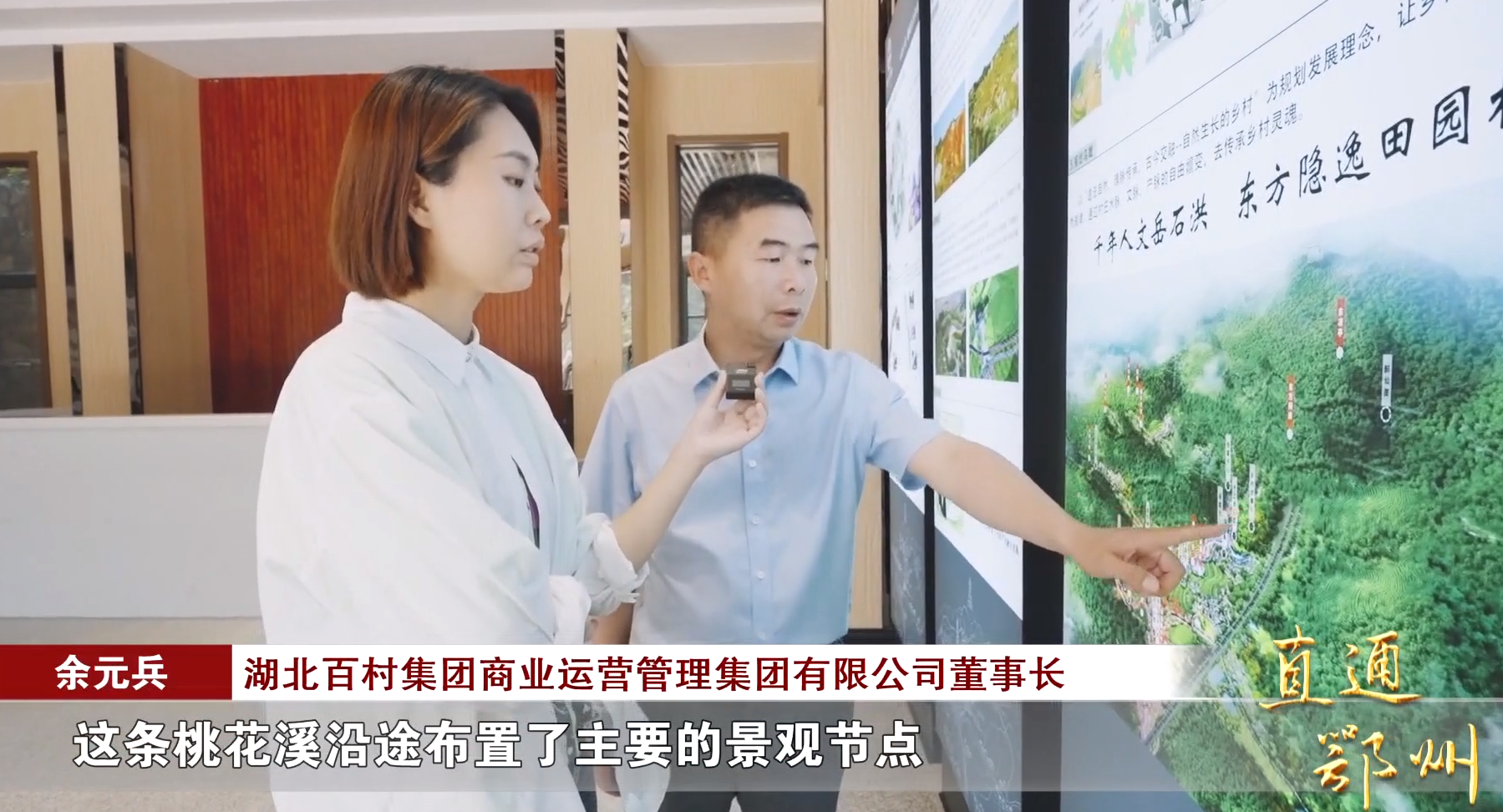 湖北百村集团商业运营管理集团有限公司董事长 余元兵:“这条桃花溪沿途布置了主要的景观节点,农文旅结合的新的业态构成了岳石洪村在乡村振兴发展过程中的主要思路。”