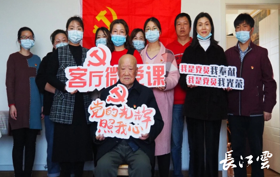 听说了老人的这个心愿后, 安居社区党支部和江岸名都小区综合党支部决定为他过一次特殊的组织生活会,于是在3月25日下午,一场别开生面的“客厅”微党课在孙老家开展起来,大家刚吃过午饭,社区党支部10多名党员和入党积极分子来到孙维学老人家里,紧张地布置起来。“孙老对党的一片赤诚之心让我们非常感动,我们一早开始准备了,准备给老人过一次别开生面的充满仪式感的组织生活。”社区工作者陈力玮介绍说。