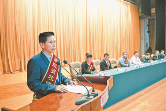 莫文珍在全国脱贫攻坚先进事迹巡回报告会上做报告。周加孔 摄