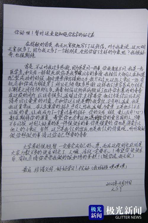 “我是一名医学生,和父母一样救死扶伤是我梦寐以求的事情......只要不求回报,对别人好真的是一件很快乐的事......这是我个人的经历,也是我的价值观......大学真的很短暂,一定要完成自己的心愿......珍惜父母,好好学习!祝好!”