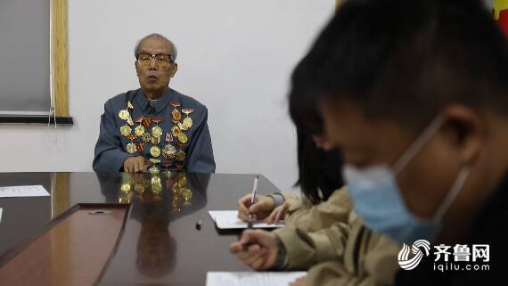 “面对十几倍于己的强敌,红军34师师长陈树湘一身是胆,毫无惧色。他率领全师战士奋力抵抗,用血肉之躯筑起了一道城墙……”5月14日,在潍坊奎文门社区的雷锋党支部,93岁老党员于春祥正在向年轻党员讲述红军长征的感人事迹。