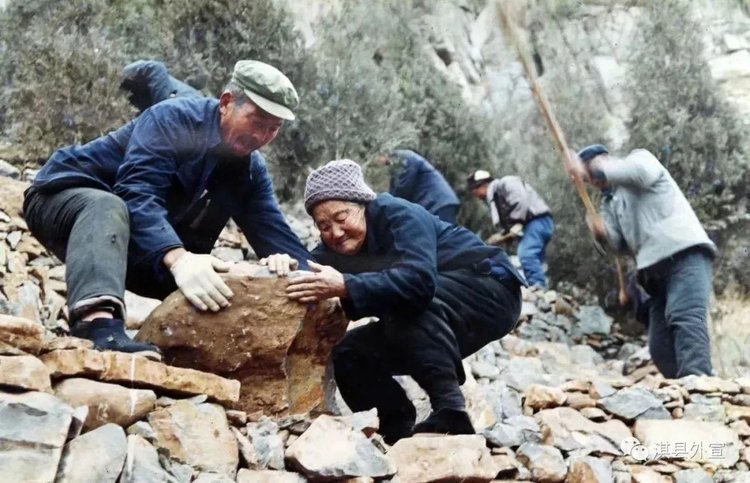 1984年,靳月英前往北京参加双拥模范大会,沿途看到外面的绿植,想到家乡光秃秃的太行山,决心一定要让革命老区的太行山绿起来。那一年,靳月英61岁。回到家的第二天,靳月英就肩扛镢头怀揣干粮上了山。说起在太行山种树的难度,当年鹤壁淇县黄洞乡鱼泉村林业技术员高玉中深有体会。“我们这儿的山,石头多土层薄,你看只有十几公分的土层,并且里面的磷石含量还很多,再加上我们这儿降雨量小、蒸发量大,栽活一棵树特别困难。”