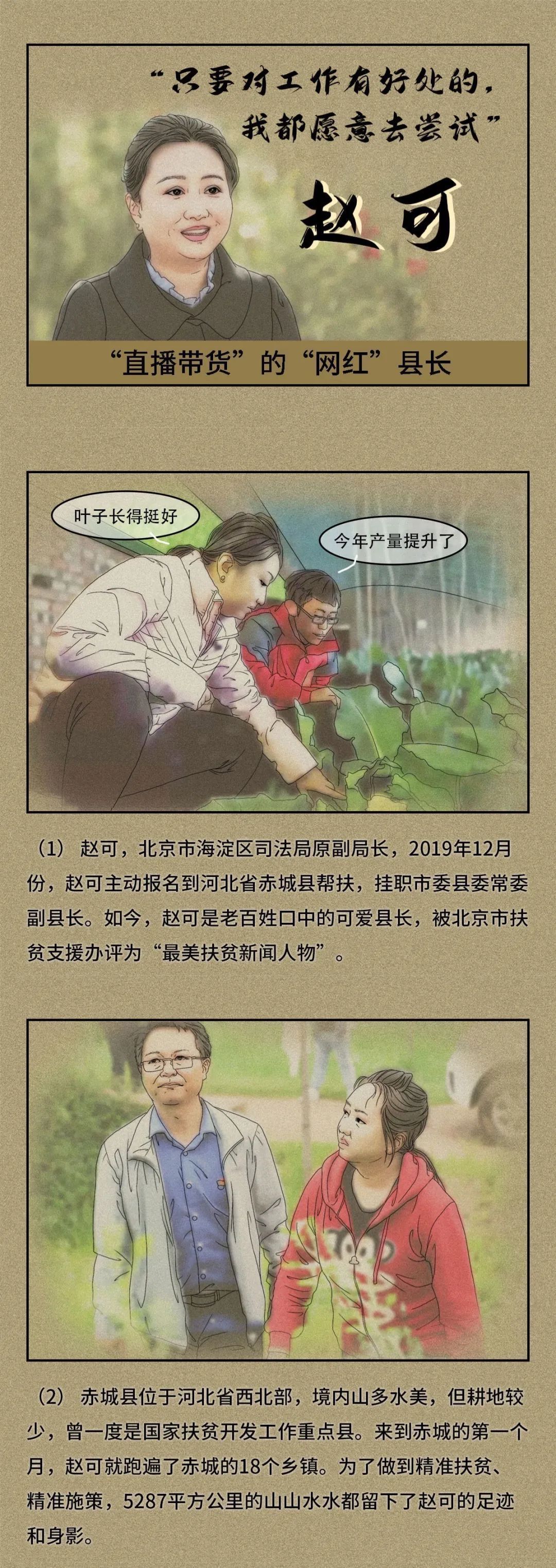 在我们身边,有很多普通的共产党员,他们默默无闻,在平凡的岗位上辛勤劳动,服务他人,以自己的方式演绎着人生的精彩。从五一劳动节开始,我们将连续推出12期有声连环画,“画”说身边不同行业领域的党员故事。在他们身上,我们可以深刻感受到追梦的勇气、奋斗的决心、抗疫的深明大义、扶贫的无私奉献……他们虽是普通共产党员,但都在自己的岗位上做出了并不普通的成绩。今天我们“画”说的“直播带货”的“网红”县长赵可,从“律政佳人”变身“直播网红”,源自一次她的大胆尝试。她说:“只要对工作有好处的,我都愿意去尝试。”了解她的故事↓
