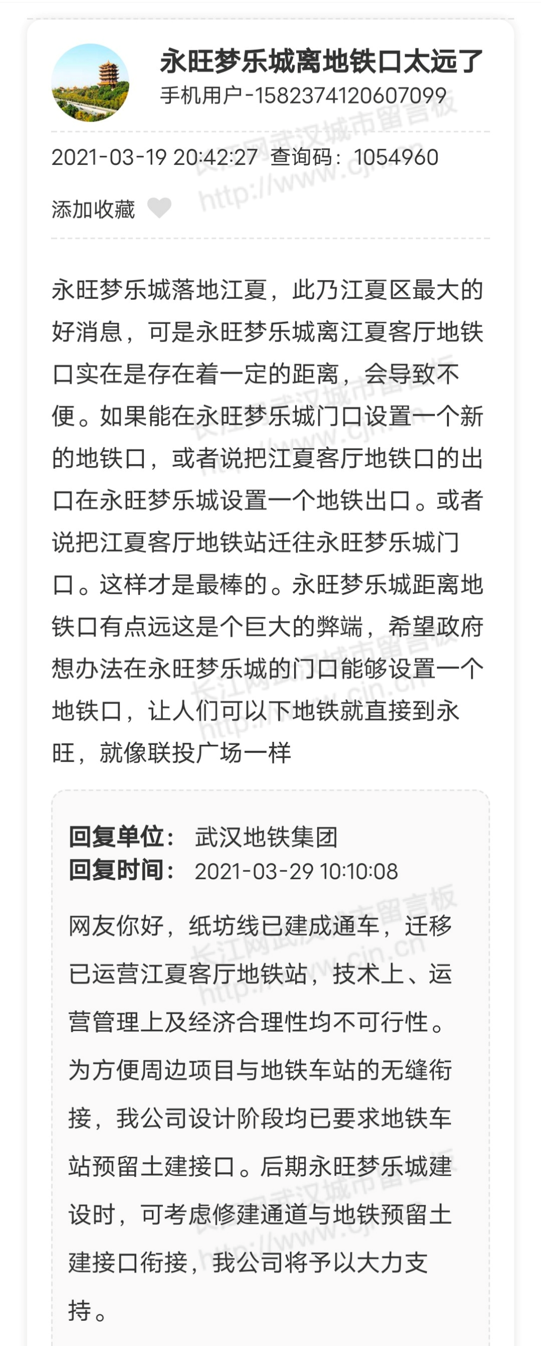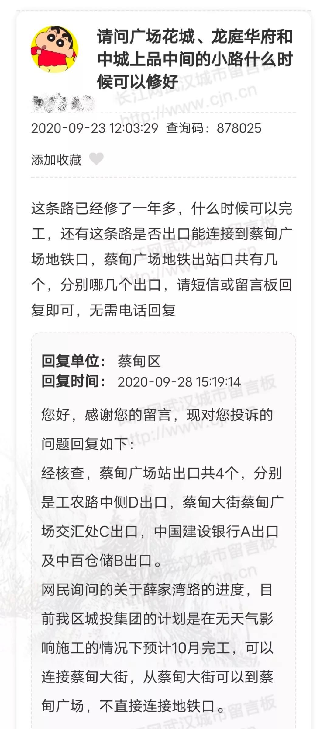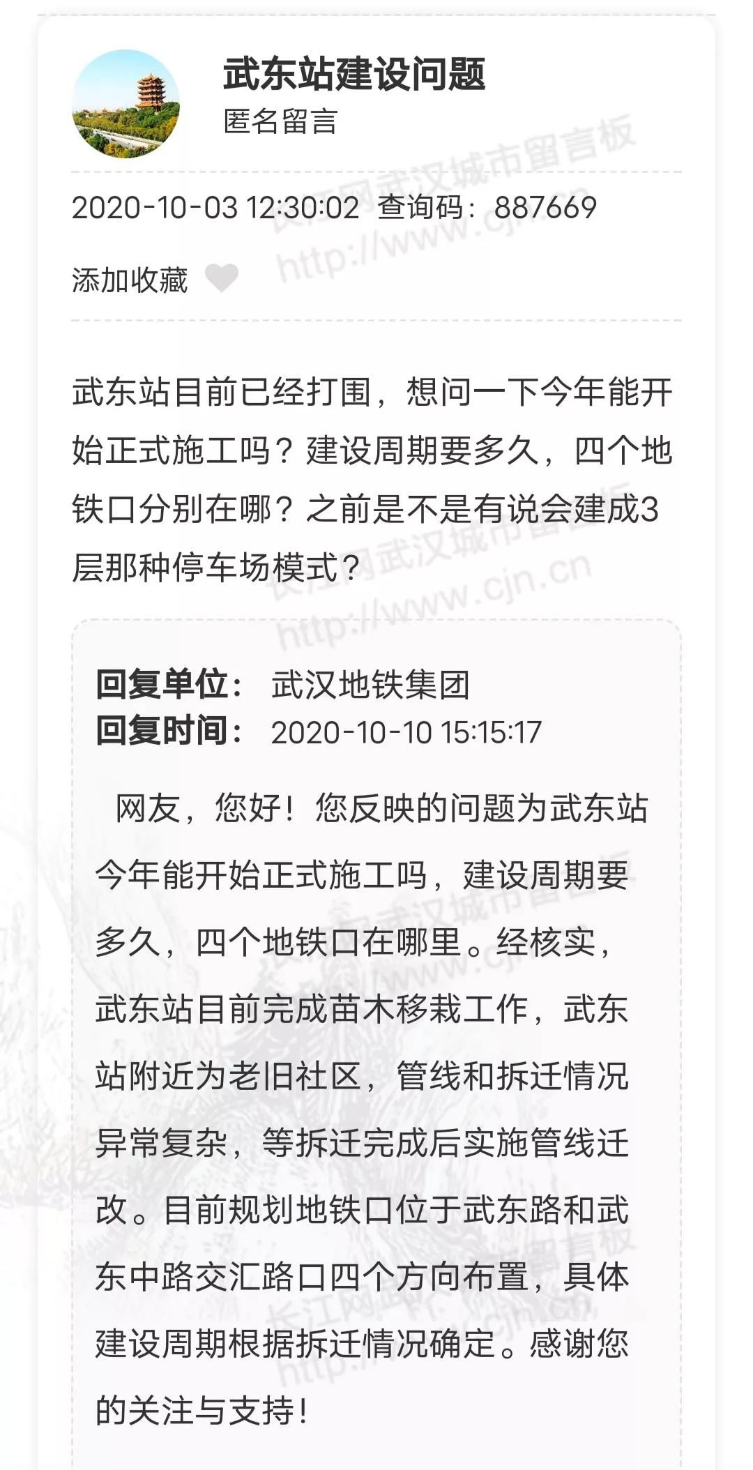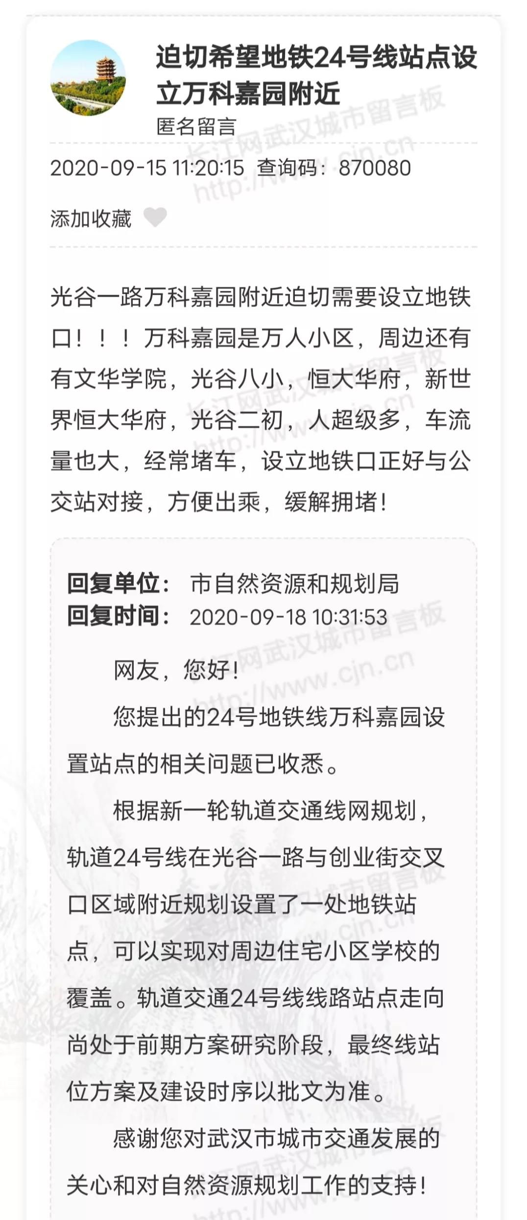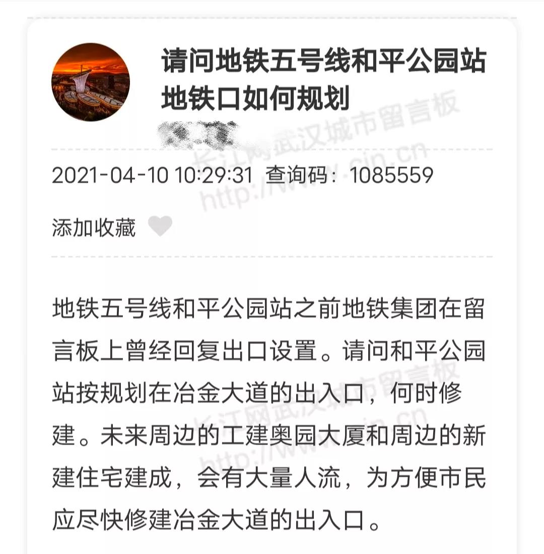 近期,有网友在武汉城市留言板上,咨询地铁口规划的相关问题,部门也给出了回应。