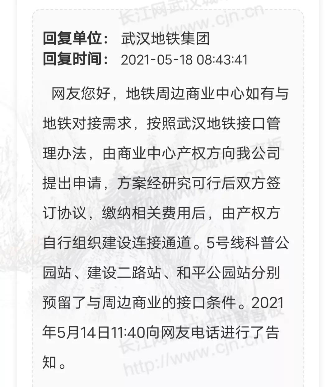 武汉地铁集团:5号线科普公园站、建设二路站、和平公园站分别预留了与周边商业的接口条件。