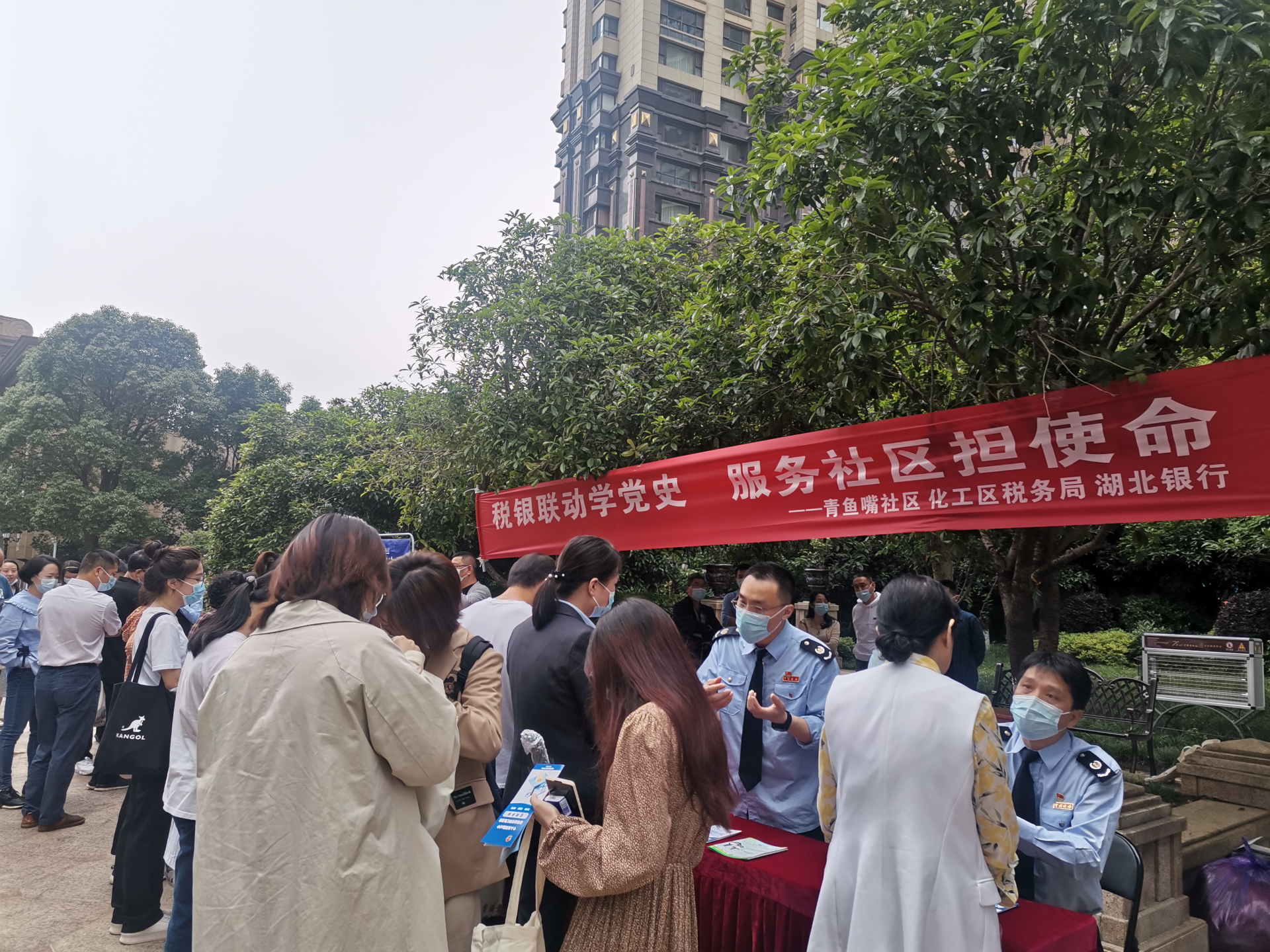 为推动党史学习教育走深走实,更广泛的服务社会和群众,5月18日,武汉市武昌区水果湖街青鱼嘴社区御湖世家联合党支部邀请武汉化工区税务局和湖北银行联合开展了主题为“税银联合学党史 服务社区担使命”的党史学习教育实践活动。