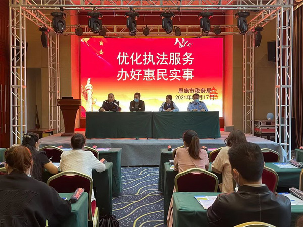 “2021年我们将持续开展‘税务蓝进商区’活动,以优化执法方式为抓手,深入推进精细服务、精准监管,持续优化税收营商环境,滋润‘小微之苗’,助力恩施几大商区发展再添繁华。”国家税务总局恩施市税务局党委书记、局长谢迅表示。