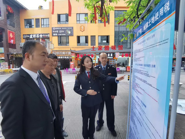奥山世纪城商业步行街小微企业多、行业覆盖面广,为 “摸清”辖区税源情况,恩施市税务局联合枫香坪居委会、奥山世纪城社区治理尖刀班党支部,充分发挥网格员熟悉社区的本土优势、税管员精通政策的职能优势,联合开展大走访,推行“网格化”协同管理服务。