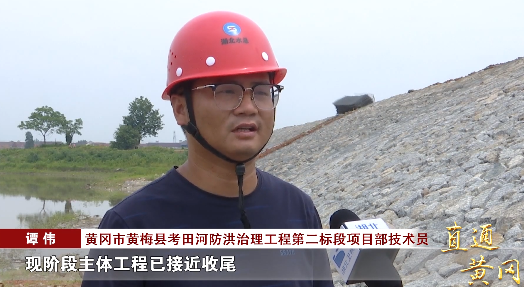 黄冈市黄梅县考田河防洪治理工程第二标段项目部技术员 谭伟:“这段河堤去年汛期被冲毁,治理工程同年12月份如期开工,现阶段主体工程已接近收尾,确保主汛期之前如期完工。”