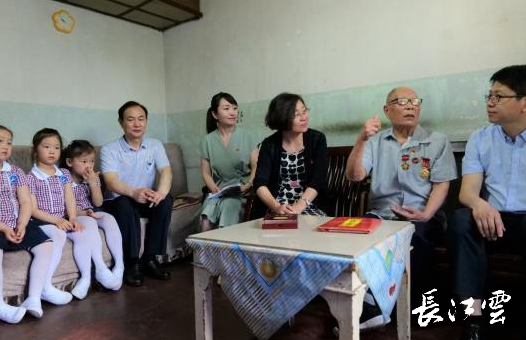 5月31日,武汉工程大学法商学院的志愿者们邀请工大幼儿园小朋友共度别样“六一”。他们“送学上门”,看望抗美援朝老兵、退休老党员胡礼清老师,送上党史学习资料和慰问品,并“一对一”帮扶结对。“70后”“80后”“90后”“00后”“10后”代表齐聚一堂,共同聆听胡礼清老师抗美援朝故事,追忆峥嵘岁月,弘扬革命精神。幼儿园小朋友们用歌舞的方式歌颂祖国,可爱模样惹得胡礼清老师开怀大笑。