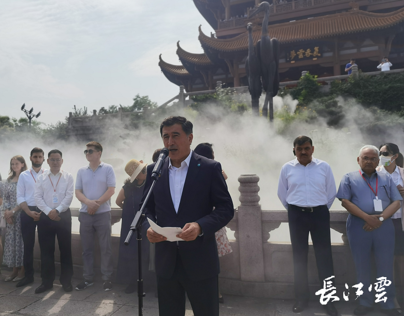 昨天(1日)下午刚刚抵达武汉,上海合作组织秘书长弗拉基米尔·诺罗夫一行就前往武汉经开区国家智能网联汽车(武汉)测试示范区展示中心参观访问,今天(2日)上午,他又来到黄鹤楼,参加上合瑜伽太极日活动。谈起湖北初印象,诺罗夫用了四个“非常”。