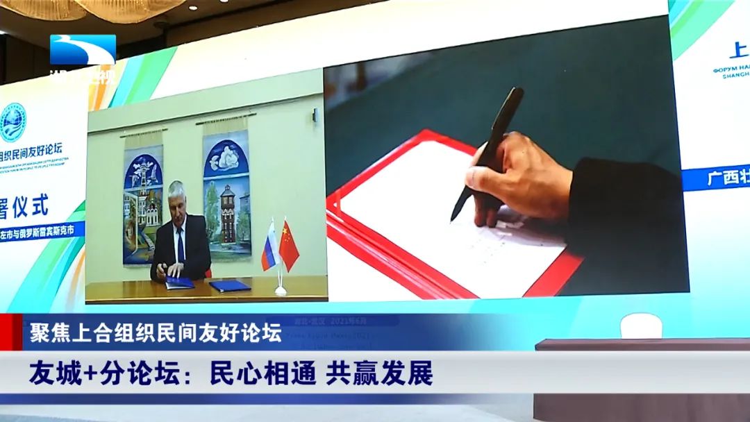 论坛现场,还以线上线下结合的方式举行了友城结好协议签署仪式。辽宁省沈阳市与巴基斯坦卡拉奇市、广西壮族自治区崇左市与俄罗斯雷宾斯克市、上海市长宁区与白俄罗斯明斯克市苏维埃区、黑龙江省绥芬河市与俄罗斯波格拉尼奇内区签署结好协议。