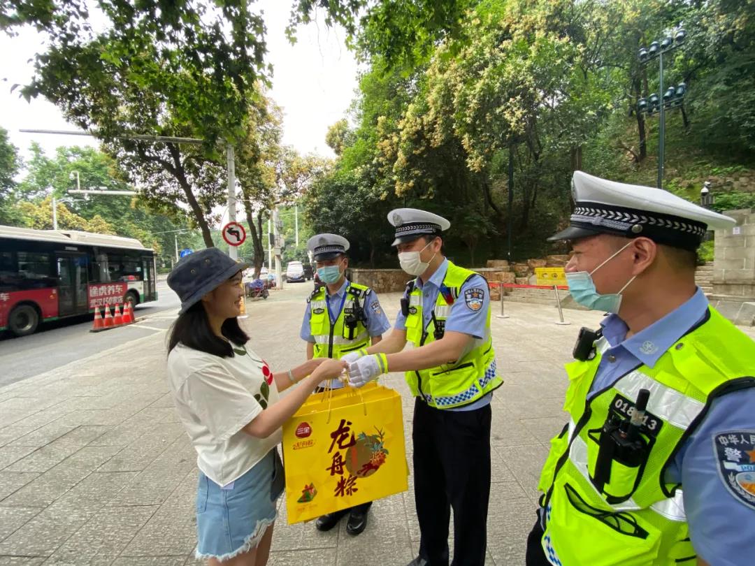 6月10日上午,湖北广播电视台交通广播事业部副总监李曙光、交通宝贝糖糖、交通宝贝荔枝、记者谢晗盟来到各个交警执勤点,代表交通广播为辛苦执勤的民警送上了交广的暖心粽。