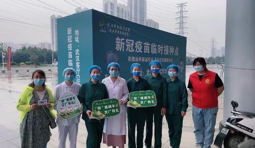 湖北广播电视台交通广播事业部主编李伟、交通广播记者严冰、谢晗盟、罗胜华来到武汉市金银潭医院,代表交通广播为辛勤工作的医护人员们送上了暖心粽,感恩奋战在一线的医护人员,为我们筑起了健康的堡垒。