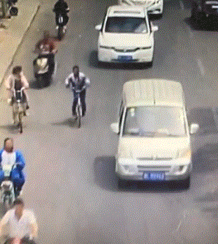 ▲孩子挣脱大人的手过马路,瞬间被撞