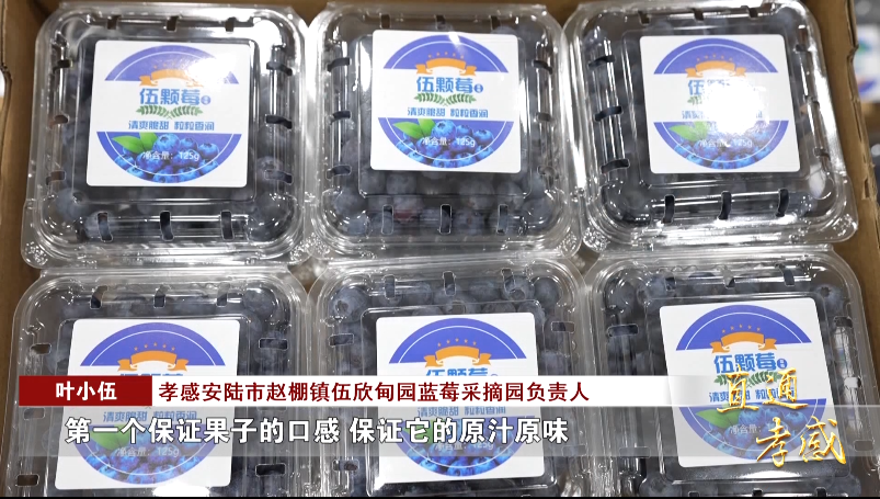 孝感安陆市赵棚镇伍欣甸园蓝莓采摘园负责人 叶小伍:“第一个保证果子的口感,保证它的原汁原味;第二个在我们送到商超去之后,货架期时间会更长一些。”