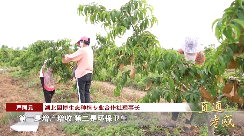 湖北园博生态种植专业合作社理事长 严同元:“大致长得像鸡蛋那样大的时候进行套袋,第一是增产增收、第二是环保卫生,同时增加了它的品相、品质以后,增加它的产品价值。”