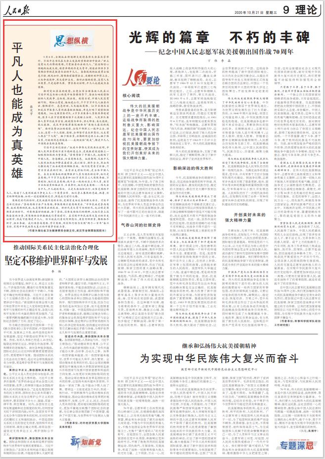 2020年10月21日出版的《人民日报》刊发了张定宇的署名文章《平凡人也能成为真英雄》。张定宇在文章中表示,面对凶猛的疫情,没有人生而英勇,只是选择无畏。事实再次证明,平凡人也能成为真英雄。