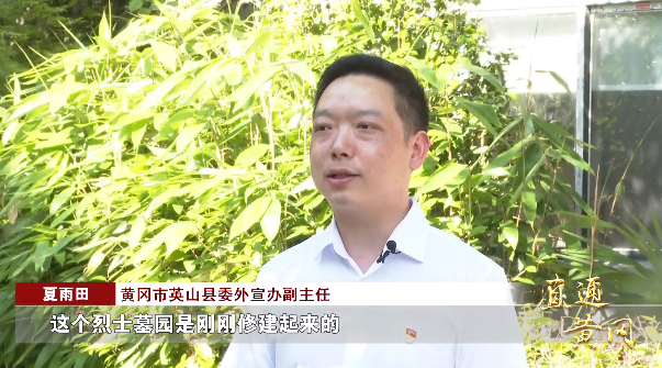 黄冈市英山县委外宣办副主任 夏雨田:“这个烈士墓园是刚刚修建起来的,里面安放着蔡家畈村32位革命烈士的墓碑,我们选择在这里举行党史学习教育活动,就是要缅怀革命先烈的丰功伟绩、传承红色基因,将党史学习教育活动转化为县域经济克难奋进、高质量发展的动力。”
