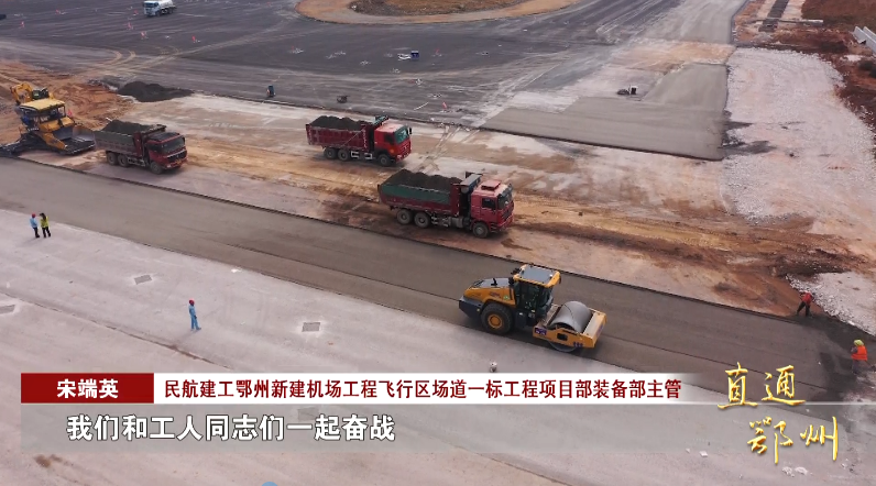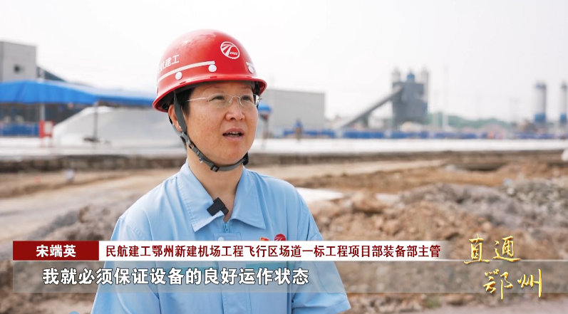 民航建工鄂州新建机场工程飞行区场道一标工程项目部装备部主管 宋端英:“我们和工人同志们一起奋战,已经把这个一标段的工程量干到第一,速度干到第一,质量也干到第一。”
