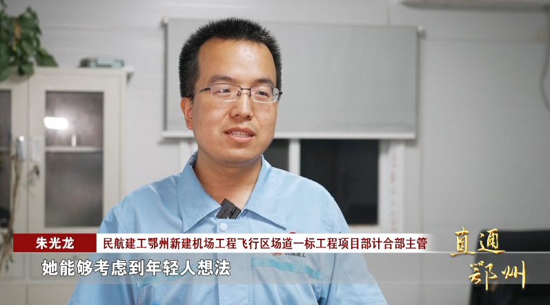 民航建工鄂州新建机场工程飞行区场道一标工程项目部计合部主管 朱光龙:“她的年龄比我大差不多20岁,她能够考虑到年轻人想法,在国外工作8年,回国以后思想上的维度比较多一些,然后宋姐就给我开导,从正面的一个积极的影响吧。”