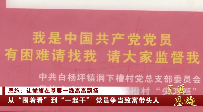 2017年,恩施州委办公室扶贫工作队进驻洞下槽村。要发展就要转路子,“尖刀班”打定主意让党员“动起来”。对全村党员按照年龄分类管理、设岗定责,家门口悬挂党员责任公示牌接受监督,让党员亮身份亮职责,从“围着看”到“一起干”,基层党建唤起内生动力,村里的基础设施不断完善、产业发展也越来越好。