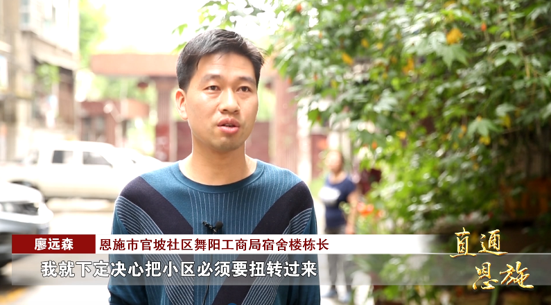 恩施市官坡社区舞阳工商局宿舍楼栋长 廖远森:“我就下定决心要把小区情况扭转过来,用自己的实际行动证明,带动所有的业主。”