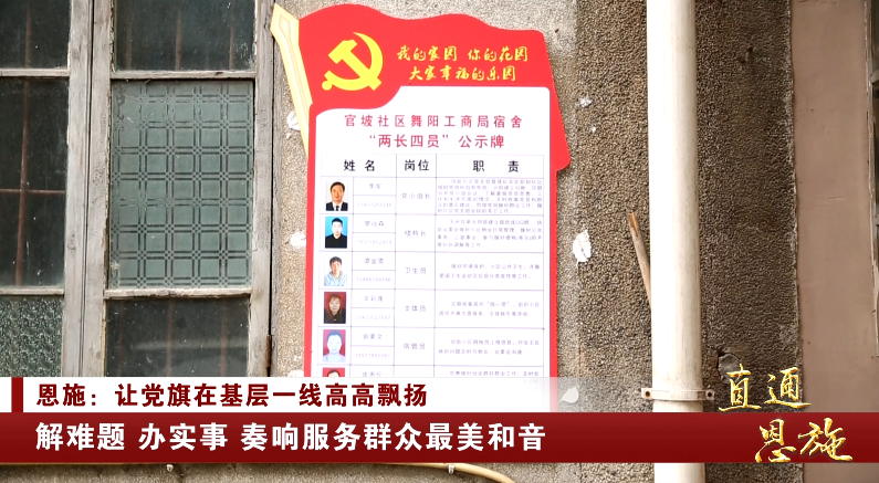 恩施市舞阳坝街道办事处官坡社区党委副书记 黄月涯:“社区是基层治理的最小单元,我们社区积极探索,完善社区治理的工作机制,为我们社区的居民提供更好的服务。”