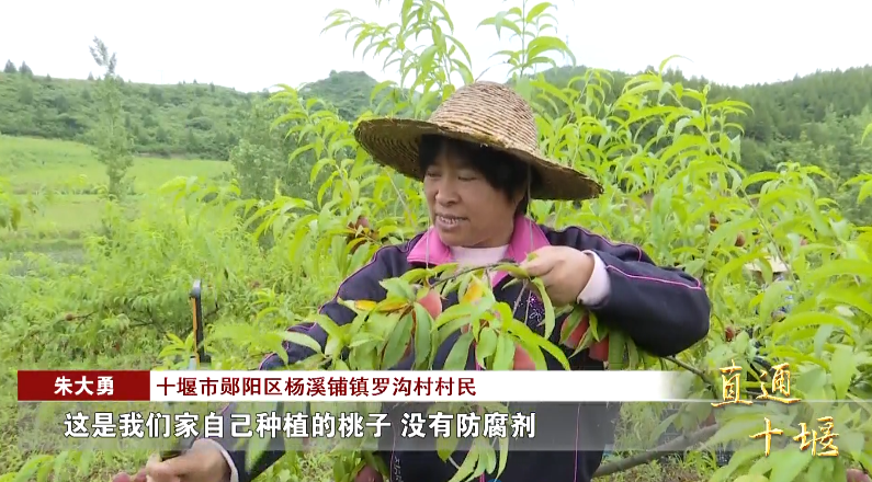 十堰市郧阳区杨溪铺镇罗沟村村民 朱大勇:“这是我们家自己种植的桃子,没有防腐剂。”