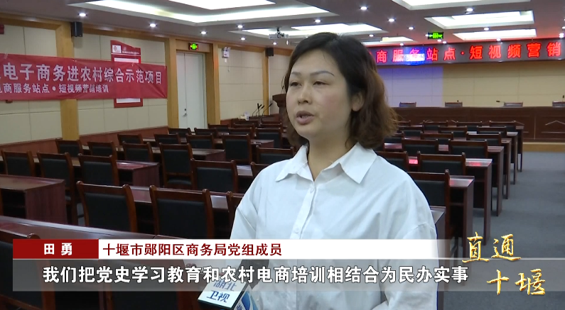 十堰市郧阳区商务局党组成员 田勇:“我们把党史学习教育和农村电商培训相结合为民办实事,针对农民从事电商过程中的难点、痛点和堵点问题,我们积极主动为其讲解专业知识,培训电商技能,让他们真正通过‘网络’能够致富。”